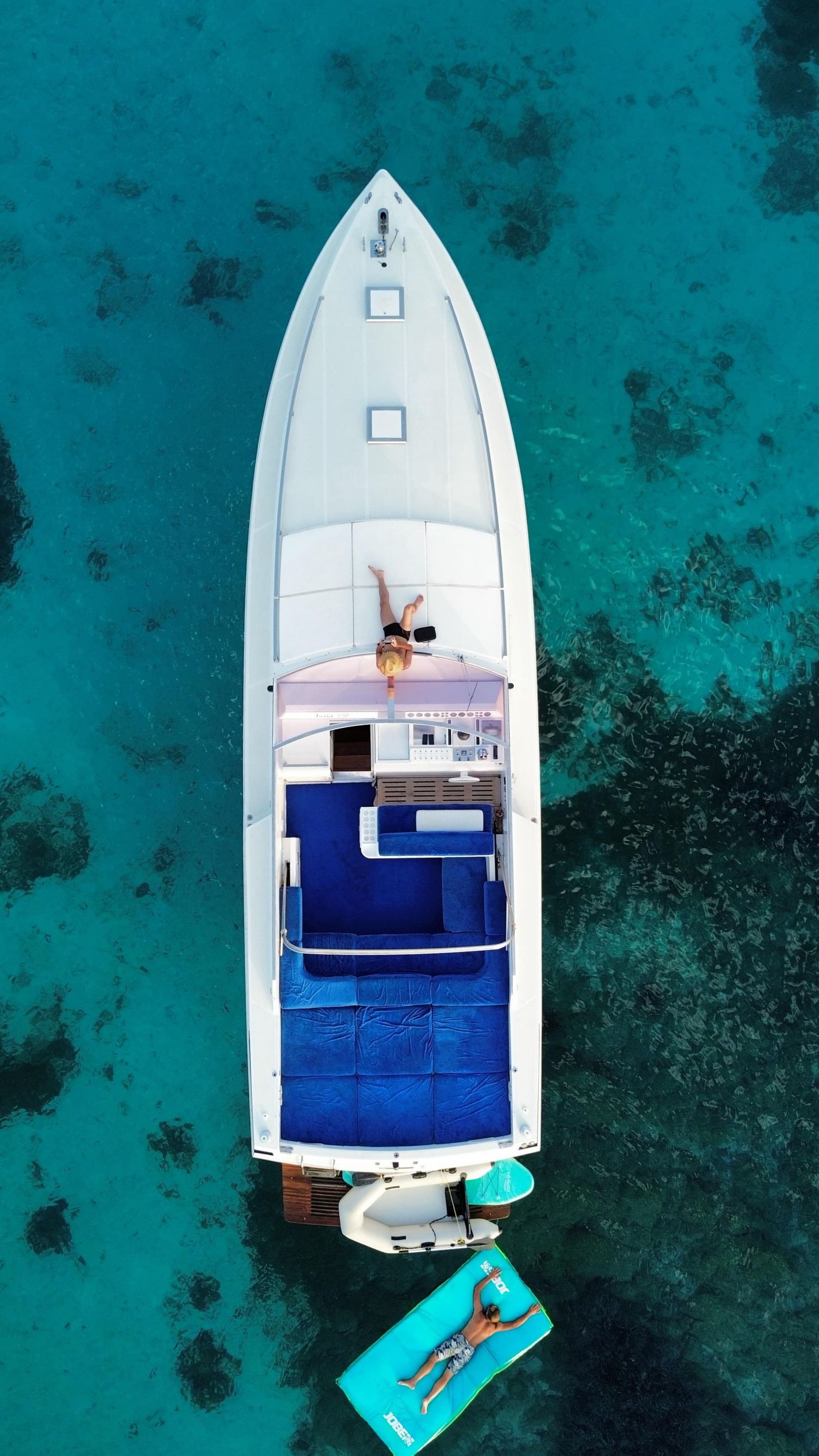 Il design elegante della Baia B50 si combina perfettamente con prestazioni di altissimo livello. Con i suoi 1070cv, questa barca garantisce una navigazione fluida e veloce, permettendoti di raggiungere in poco tempo le destinazioni più belle della Sardegna, come Tavolara, l’arcipelago di La Maddalena o il Golfo del Pevero. Grazie al nostro skipper esperto, potrai rilassarti e goderti il panorama, sapendo che sei in mani sicure.